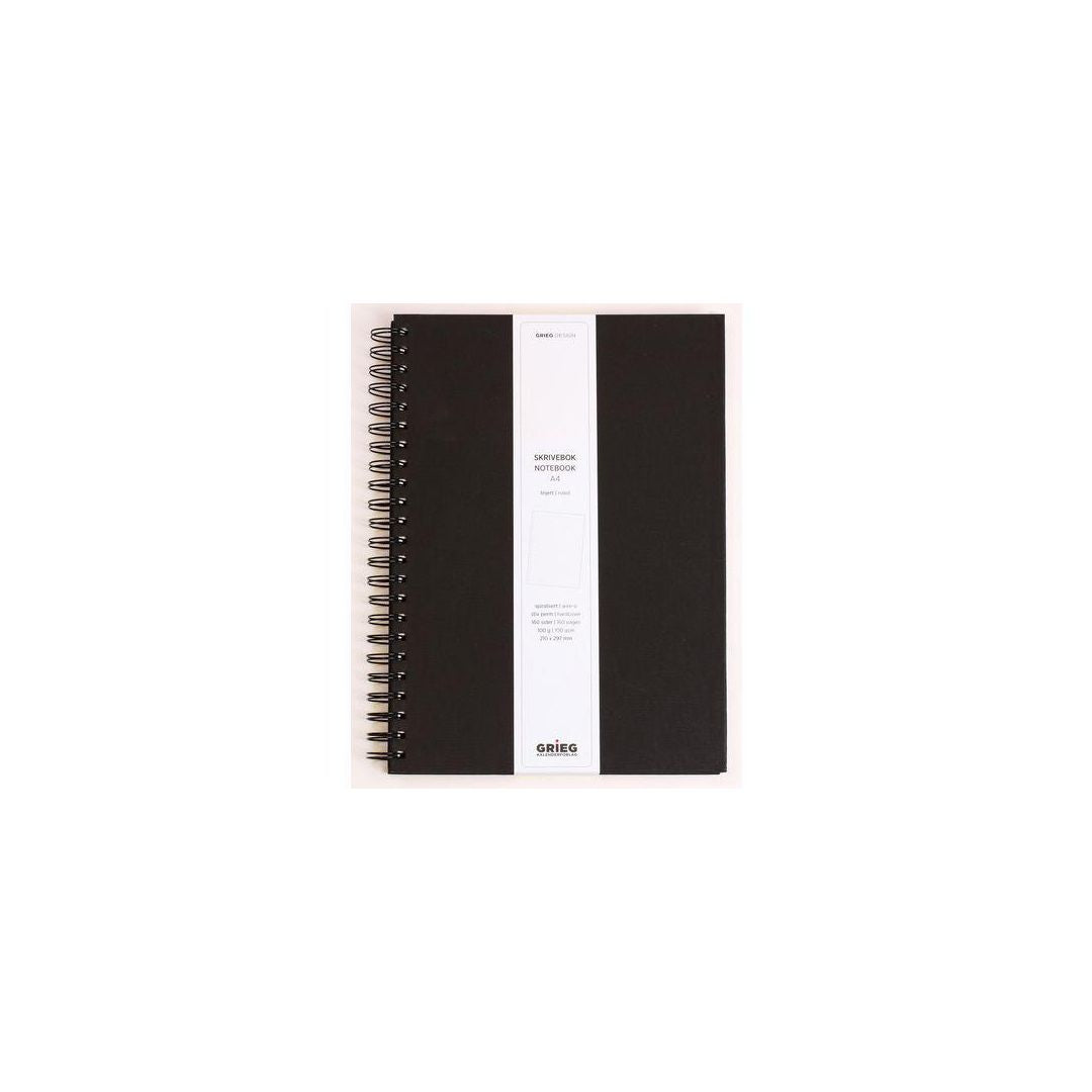 Elegant notebook Grieg Design. Spiral bound with hard cover in linen textile. A4, 100g, 80 sheets, lined, black