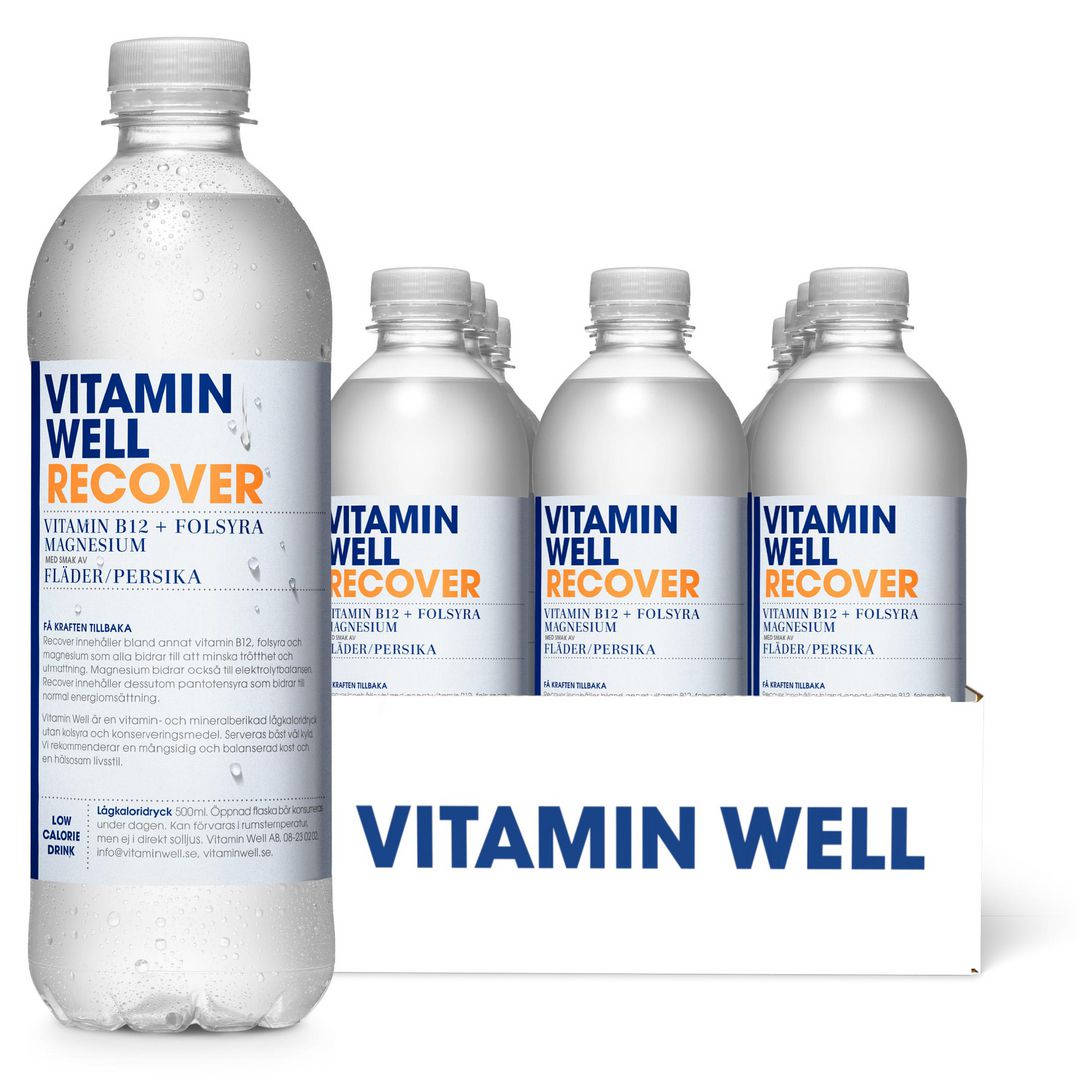 Vitamin Well Recover – Recovery and energy in every sip, a delicious flavor combination for all taste buds! Give your body the support it deserves with Vitamin Well Recover! With a powerful mix of vitamins and minerals, including B12, folic acid and magnesium, it fights fatigue and supports your recovery. The Elderberry/Peach flavor is not only delicious – it is a favorite for everyone, whether you are Grandma, Alex or someone in between. Enjoy every sip and feel how Recover gives you new energy and joy of life! - Recover - 50 cl