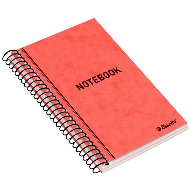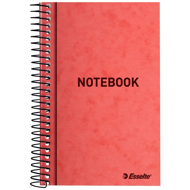 Stylish spiral notebook with red cover with 'Notebook' written in black across the cover. The small format makes it easier to carry this notebook around. Perfect for shorter notes. Black plastic spiral in the left edge. 6.0 mm ruler in gray color. - Number of sheets: 50 sheets - Paper weight: 55 g/m² - Black plastic spiral in the left edge - No perforation - Dimensions: 140x90mm - Lined - Color: Red - Nordic Ecolabel License number: 40410675